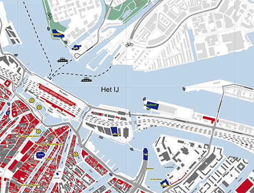 Amsterdam is also great to explore by bike. On the map are a number of marked bike rides to the outer regions.