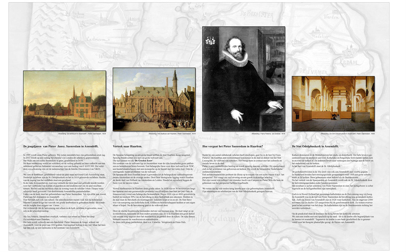 Met dank aan de fantastische samenwerking van de vele vrijwilligers van Cultureel Raadhuis Assendelft die een enorme hoeveelheid afbeeldingen en verhalen hebben verzameld over het leven en werk van Pieter Jansz Saenredam 1597 1665 hebben wij de expositie vorm mogen geven in opmaak en beeld.